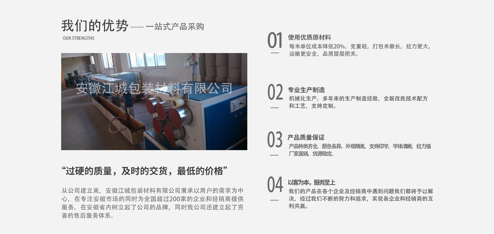 安徽江城包裝材料有限公司成立于2008年,注冊于2010年,公司總部設立在安徽蕪湖,是安徽省內專業(yè)生產與銷售打包帶、透明膠帶的公司之一。公司主要效勞于大中小企業(yè),并大力開發(fā)省內經銷商。公司以“過硬的質量,及時的交貨,低的價格”,為企業(yè)的立身之本。希望用我們的不懈努力,帶給我們客戶大的效益。從公司建立來,安徽江城包裝材料有限公司秉承以用戶的需求為中心,在專注安徽市場的同時為全國超過200家的企業(yè)和經銷商提供服務,“過硬的質量,及時的交貨,低的價格”博得了縱多的企業(yè)和經銷商的好評,在安徽省內逐步樹立起了公司的品牌,同時我公司還建立起了完善的售后服務體系。為我們的產品在各個企業(yè)及經銷商中遇到的問題予以解決,經過我們不斷的努力和追求,實現(xiàn)各企業(yè)和經銷商的互利共贏。